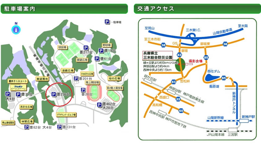 ※撮影会場内へは徒歩で入ることが出来ます。撮影の邪魔にならないようお願い致します。